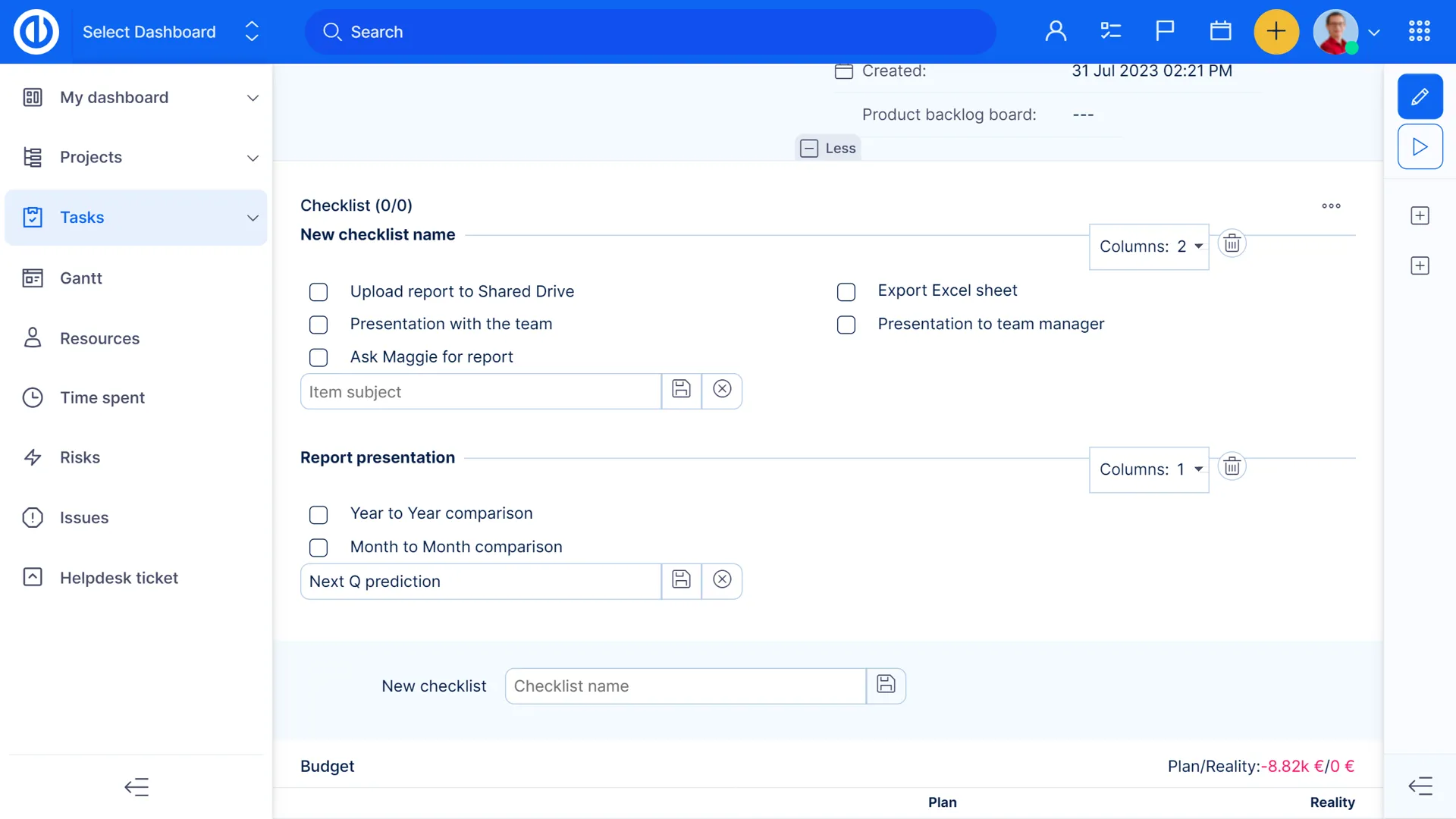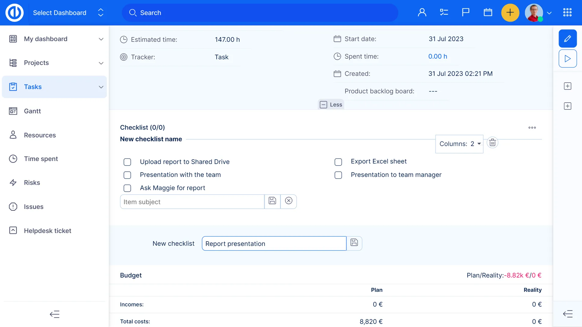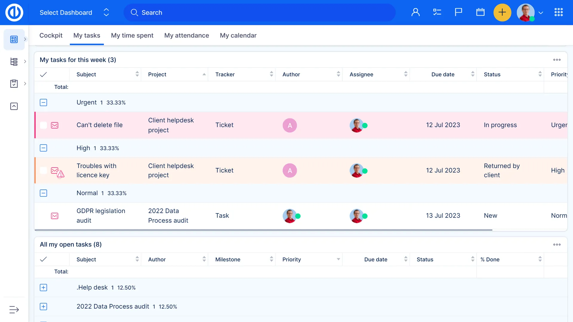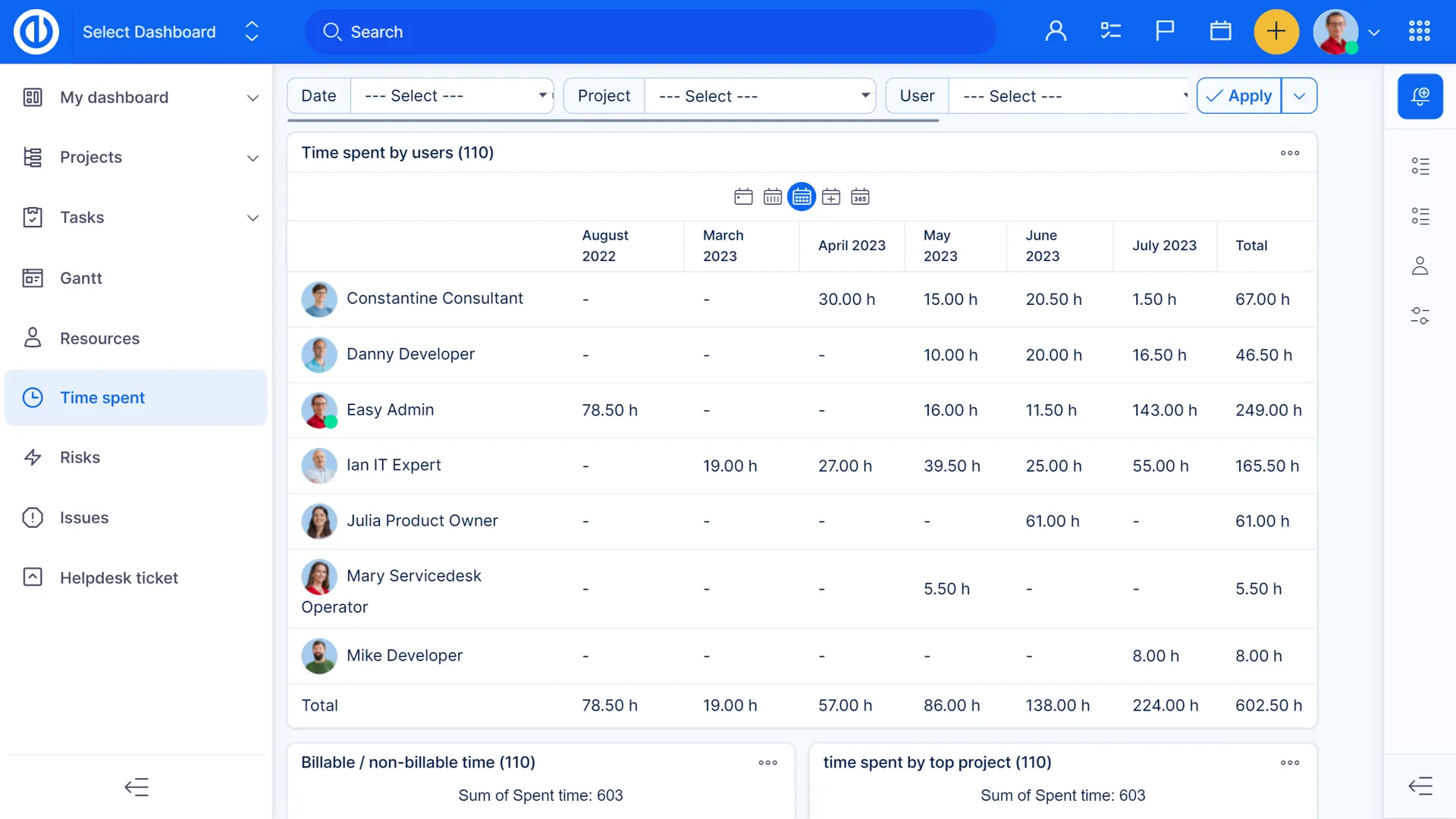People Dashboard дозволяє вам переглядати інформацію про ваших користувачів на перший погляд. Використовуйте панель приладів, щоб переглядати завдання користувачів та їх статуси, статус членства в проекті користувачів, завершення призначеної роботи, завершені завдання, витрачений час, особисті витрати та багато іншого!