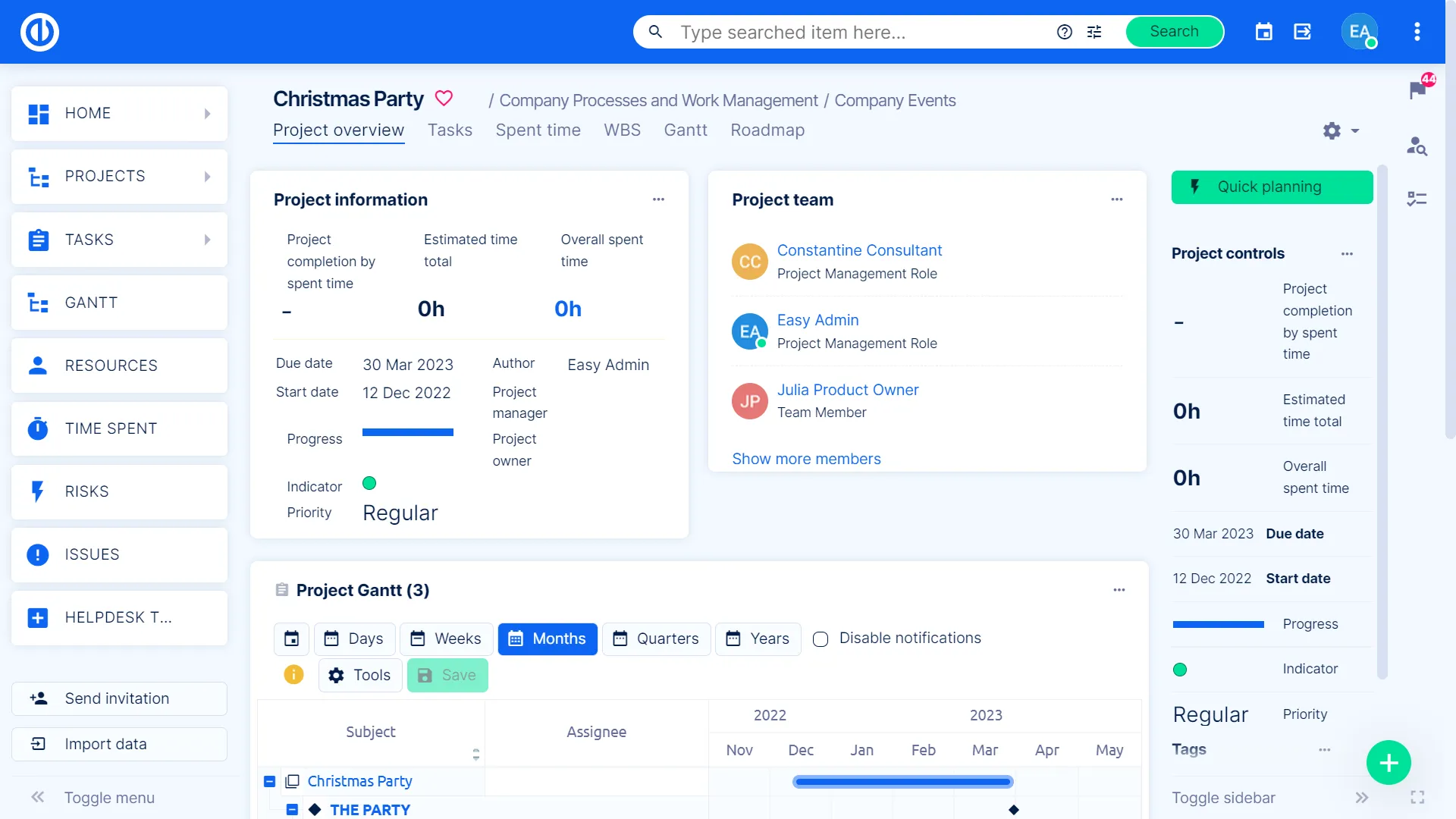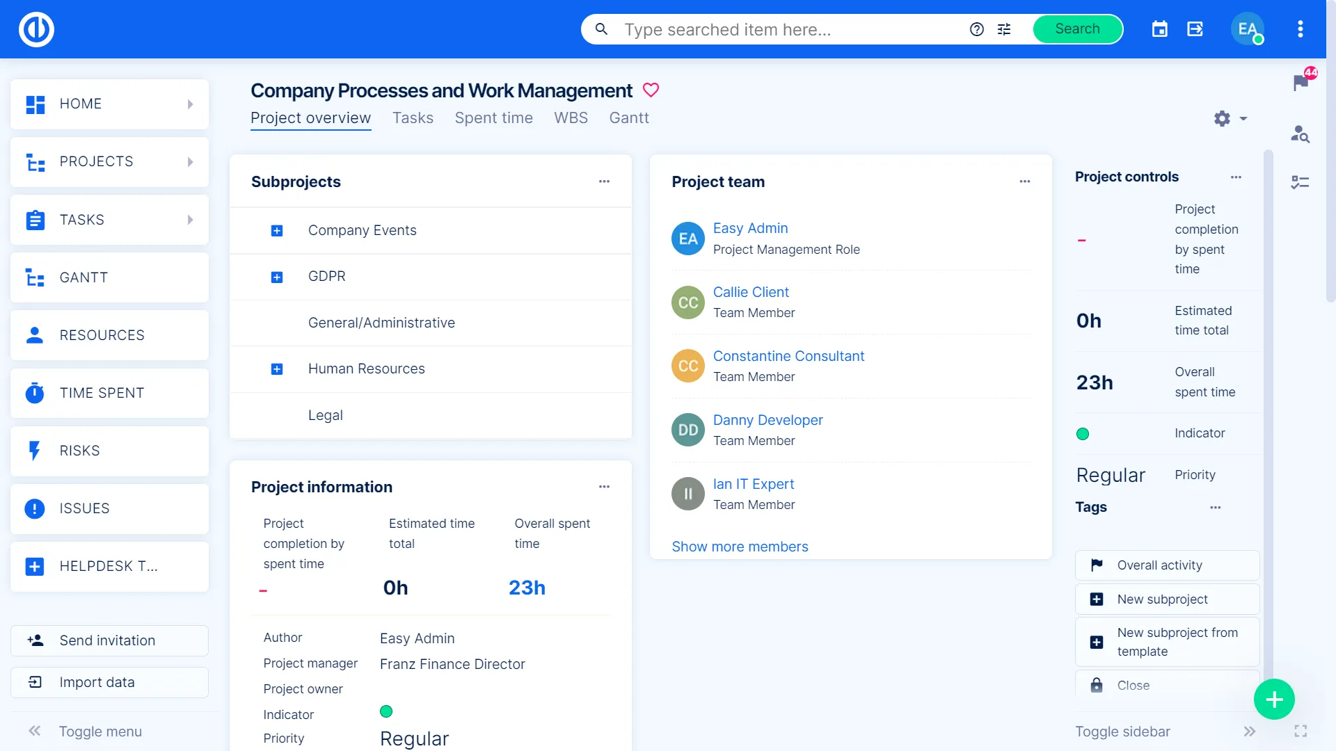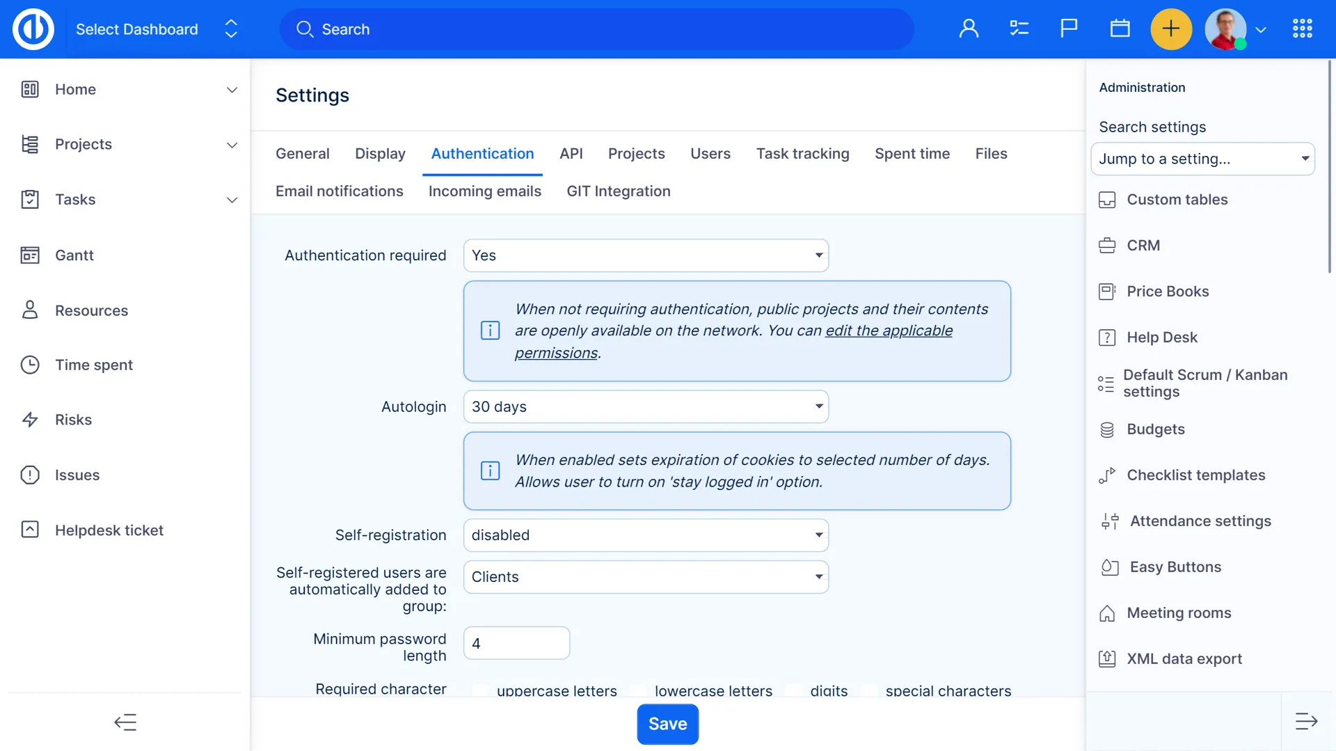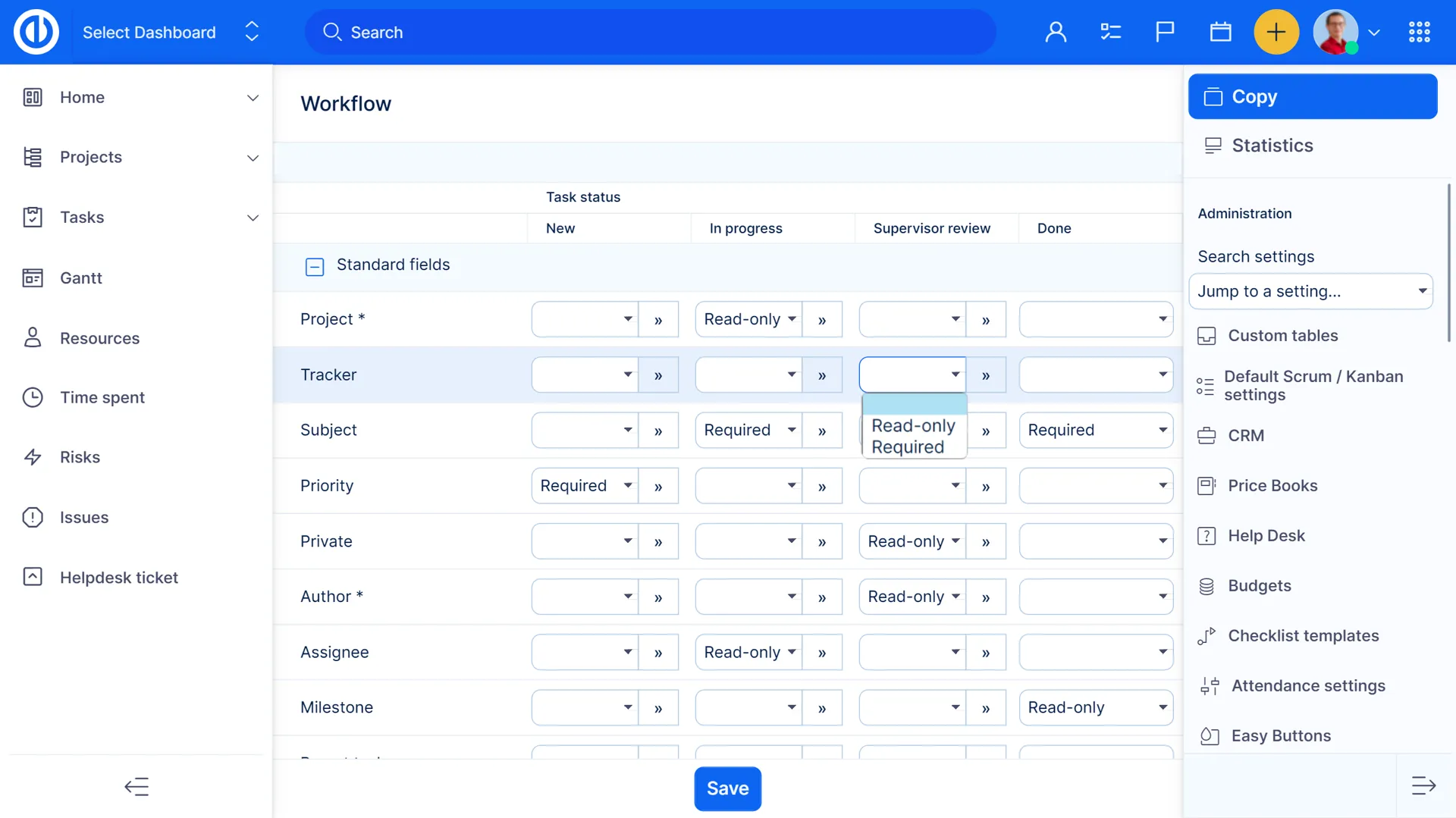 Easy Redmine - це складна система управління проектами, яку можна налаштувати в багатьох аспектах. Це включає налаштування для користувачів, фільтрів, ролей та дозволів, типів користувачів, календарів, категорій, запланованих завдань, користувацьких полів, груп, контактів, шаблонів, робочого процесу та більше.