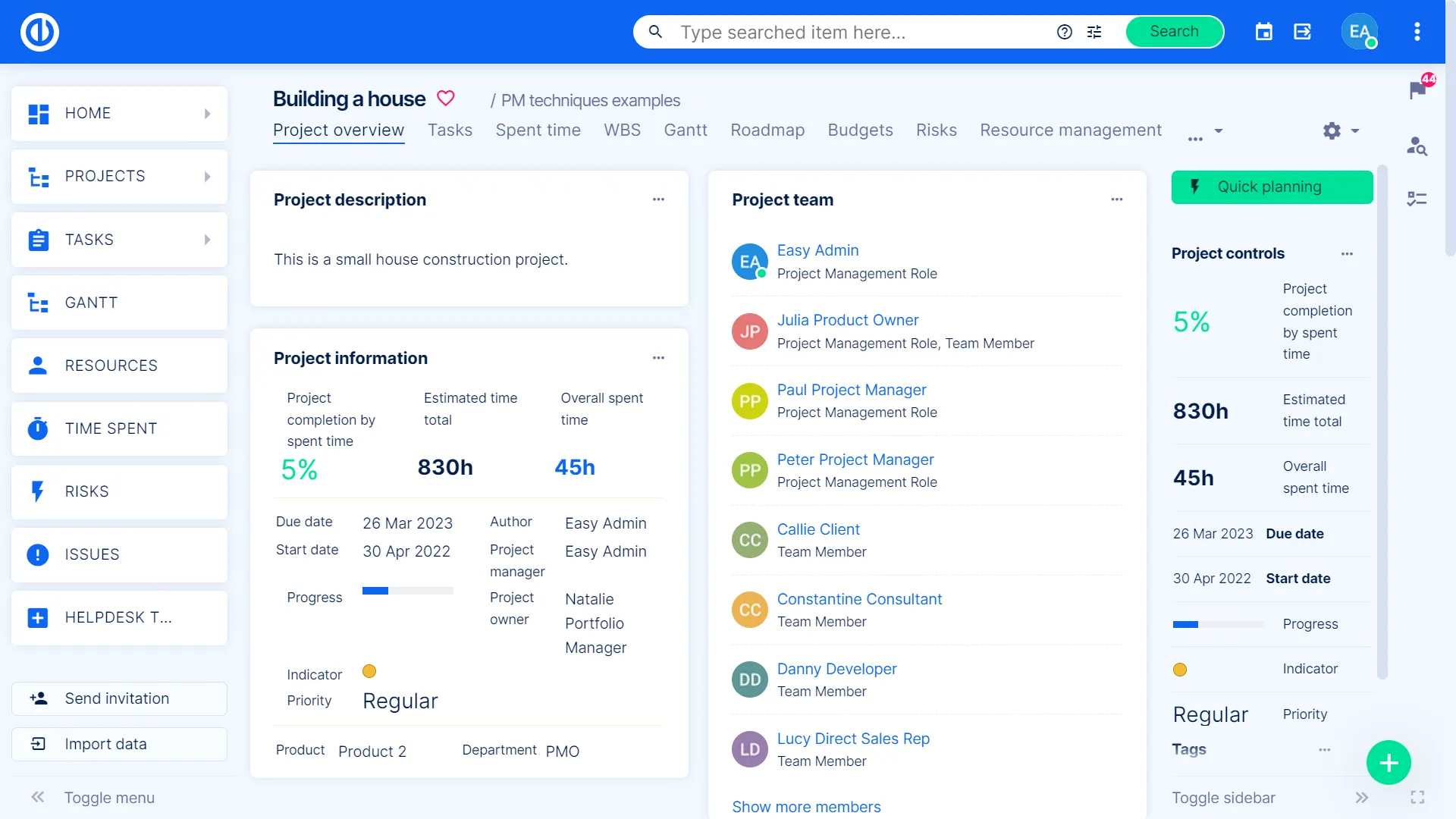 Він служить для швидкого та простого планування нестандартних проектів, де шаблони проектів не застосовні. Швидкий планувальник дозволяє визначити ключові завдання, які потім повинні бути керовані в діаграмі Ганта.