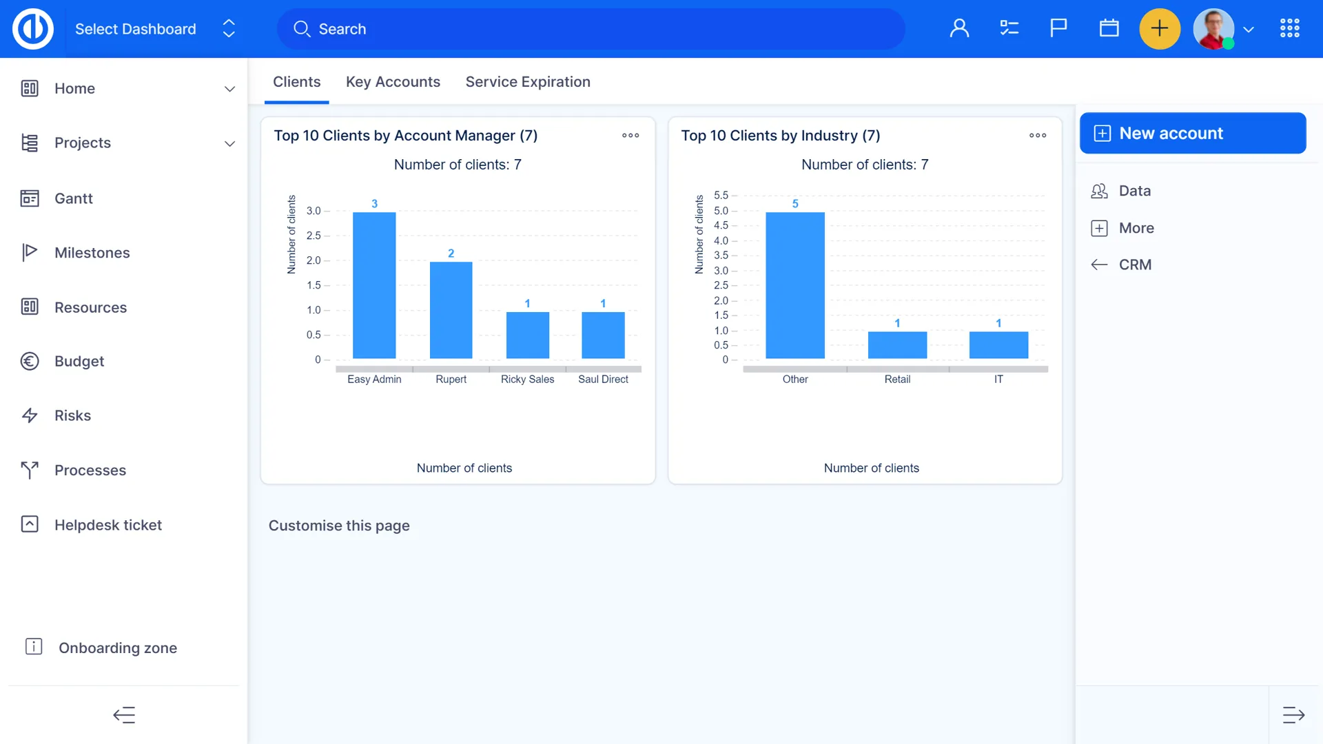 Завдяки інтегрованій платформі управління проектами B2B CRM забезпечує дійсно всебічний погляд на життєвий цикл ваших клієнтів. Окрім традиційних даних продажів, B2B CRM надає огляд доставки, проектів, клієнтської підтримки в одній системі, все на одній сторінці.