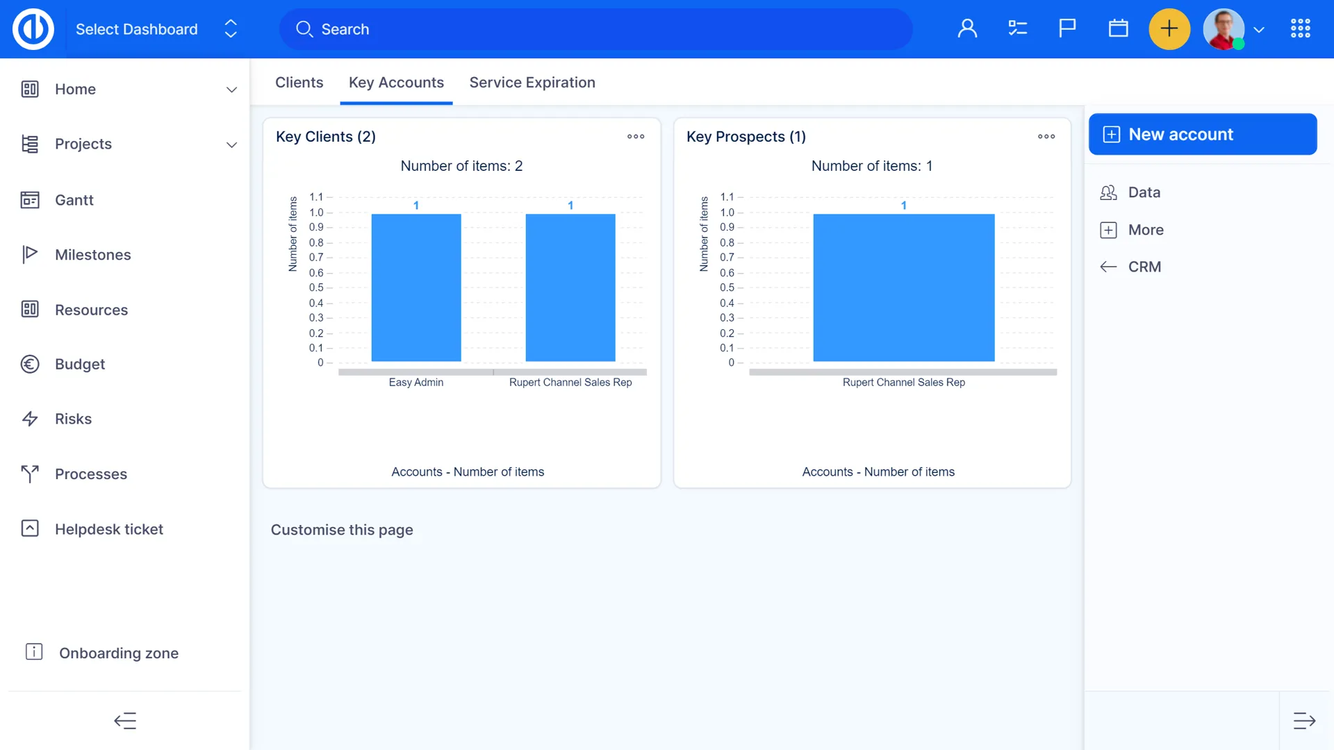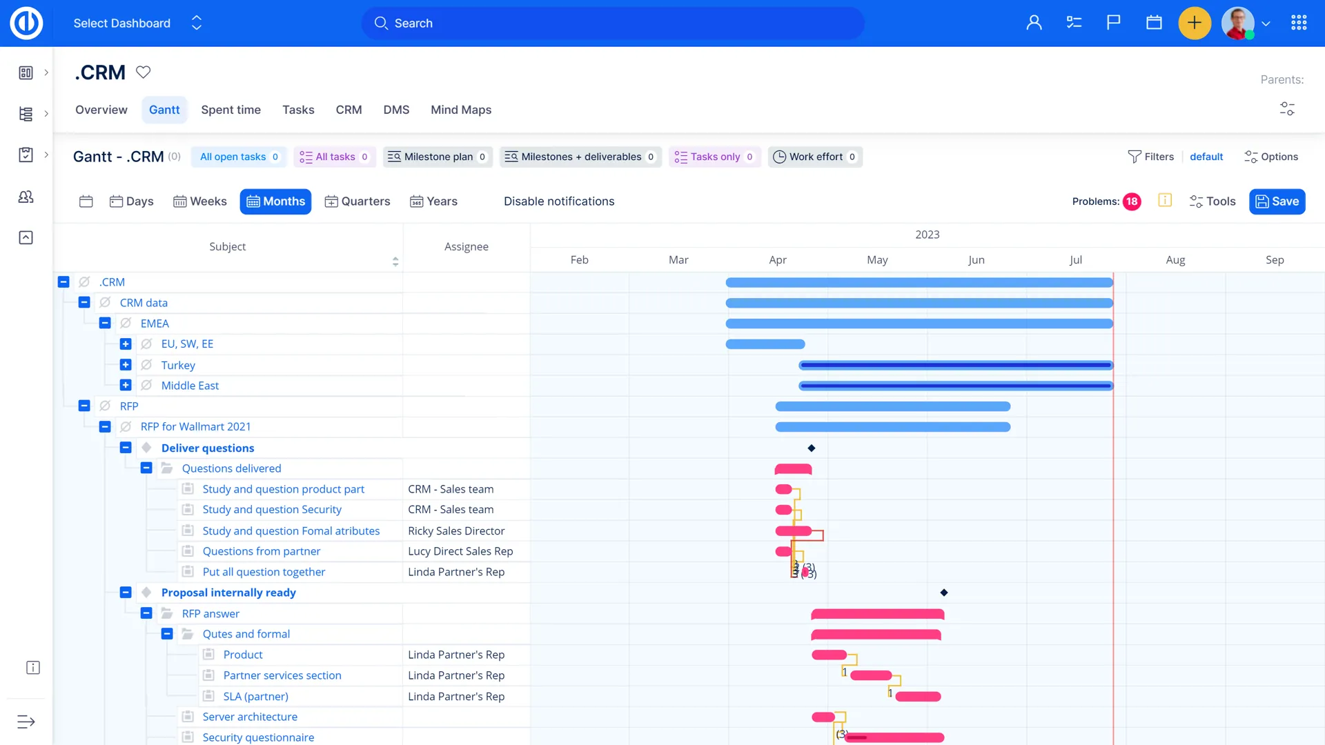 Основні функції управління проектами, такі як WBS, Gantt або Agile-управління, присутні для підтримки різних процесів у відділі продажів або для доставки проектів.