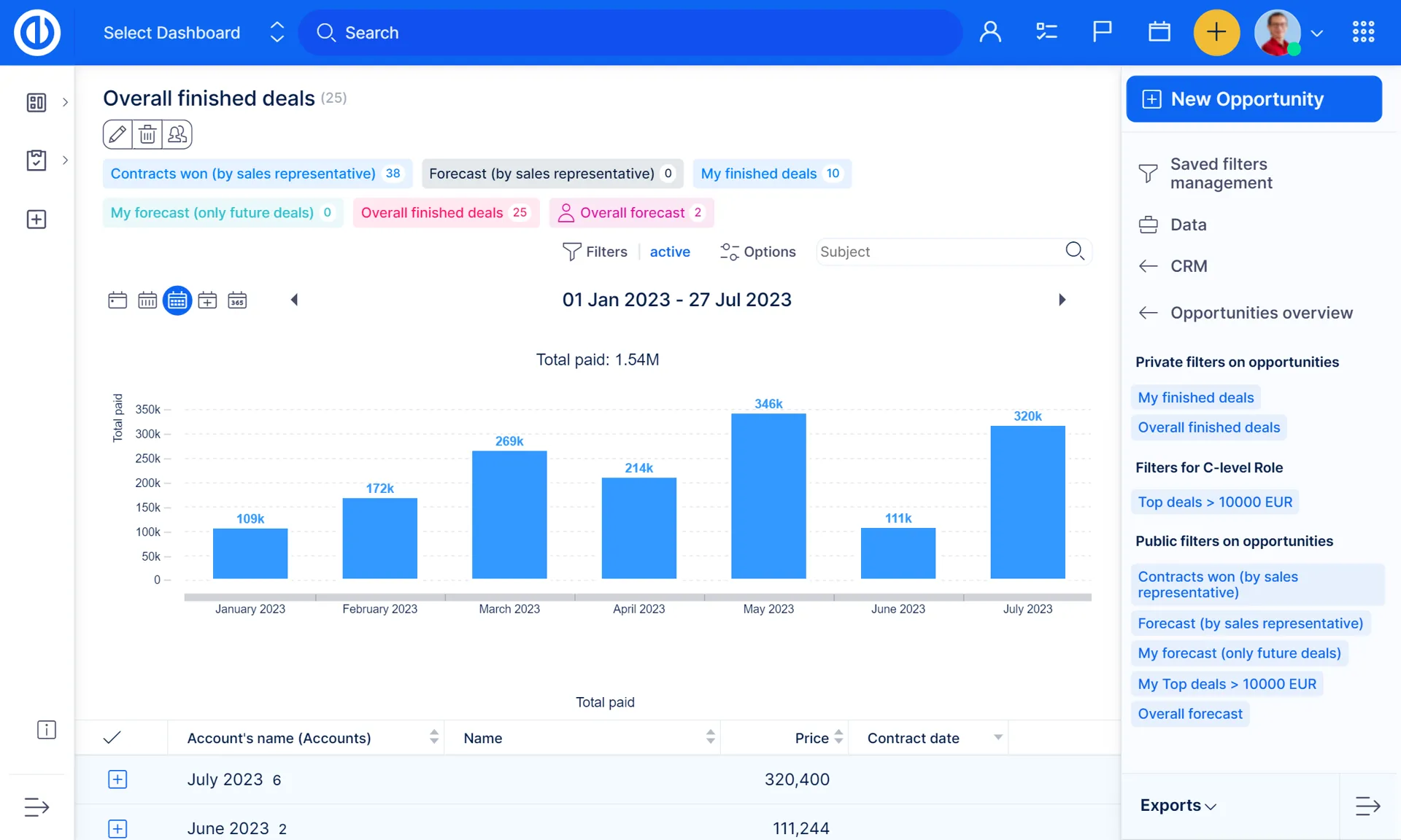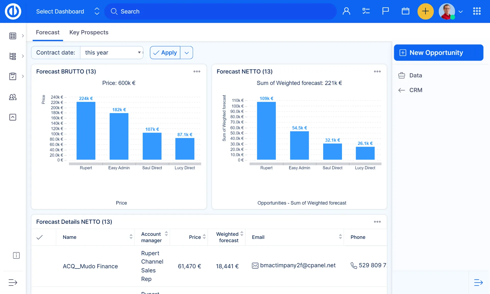 У новій B2B CRM ви будете оновлені із настроюваними звітами прогнозування продажів, які ви можете легко створити. У наших сценаріях на основі ролей директор з продажів має чіткий огляд доходів, продуктивності менеджерів з продажів та потоку. Перегляньте, які представники на дорозі до перевищення своїх цілей з реальними таблицями лідерів.