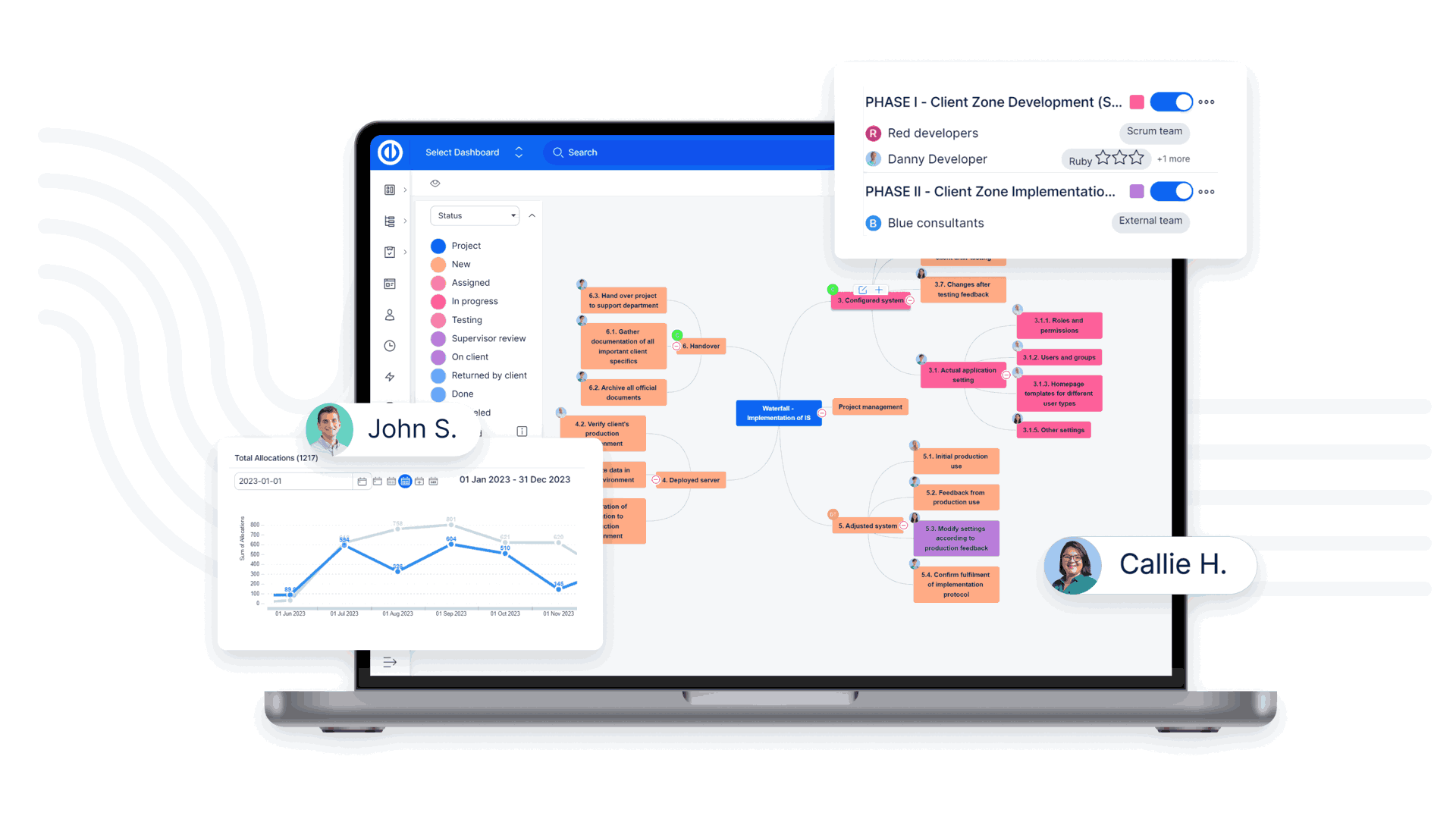 Resource management ensures the right resources are available at the right time and helps identify conflicts and bottlenecks.