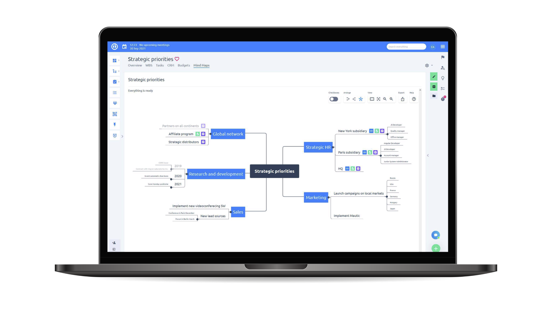 Bản đồ tư duy không chỉ là một bộ sưu tập ý tưởng, nó còn là nền tảng vững chắc cho dự án của bạn mà bạn có thể xây dựng trên đó với Cấu trúc phân rã công việc hoặc Biểu đồ Gantt.