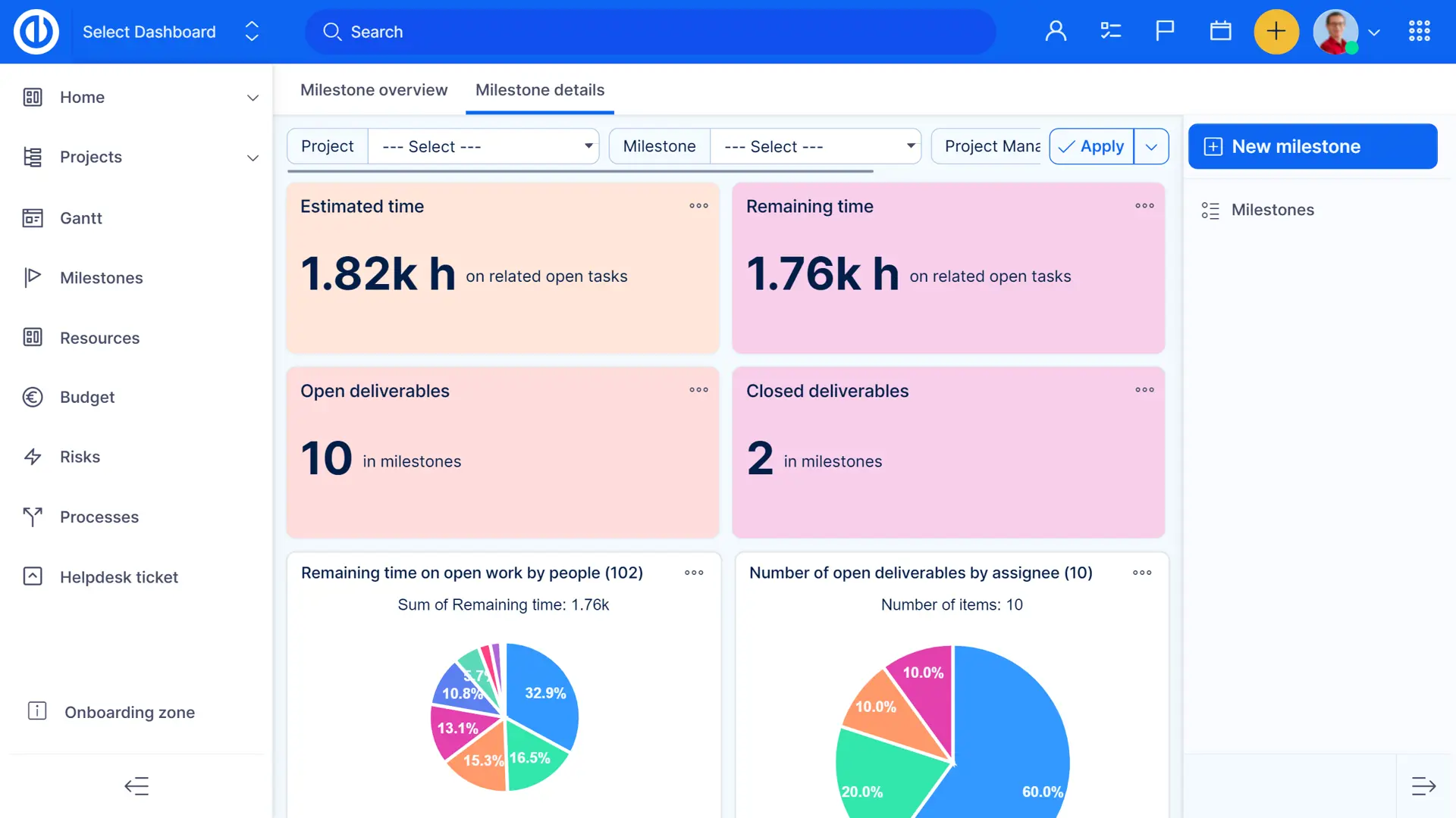 Một bảng điều khiển cá nhân được định nghĩa trước phù hợp cho vai trò CEO được thiết kế để cung cấp cái nhìn tổng quan về hiệu suất hiện tại liên quan đến quản lý cấp cao.